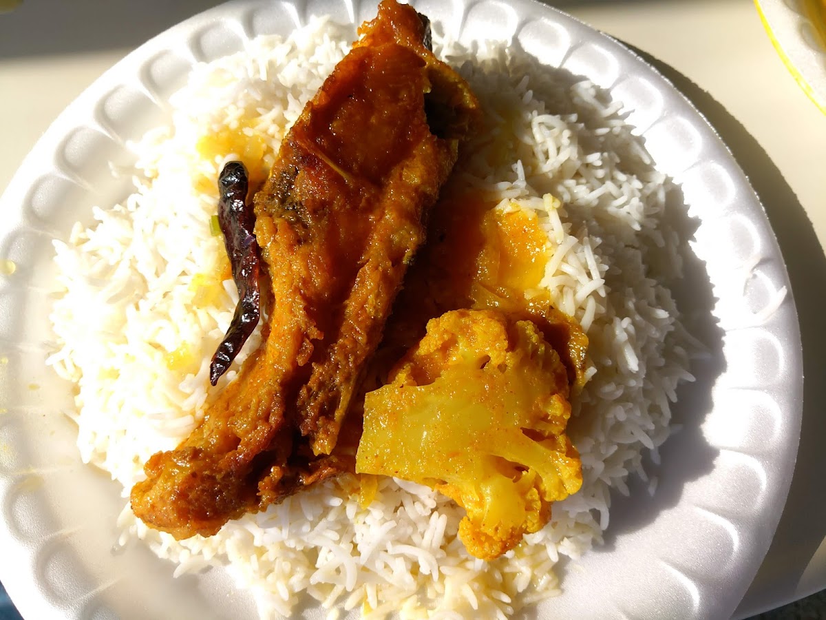 My good friend Farzana blessed her amazing heart. She invited me here after Friday service. This is my first time eating Bangladeshi food. She ordered Chicken Biriani. MY GOD, I thought I went to heaven. The rice was DELICIOUS, perfectly moist and cooked to perfection. The chicken was succulent, the curry on the chicken, the prunes, and hot peppers on the rice, all goodness. Overall, if I could, I'd give this wonderful place a 10 for the excellent portion of rice, very nice people running the place, friendly and humble. Im a foodie. This is definitely A+ in portion, flavor, and great customer service. Better visit hungry. It is very well worth the trip and the food. I can't wait to bring my brother to this place.